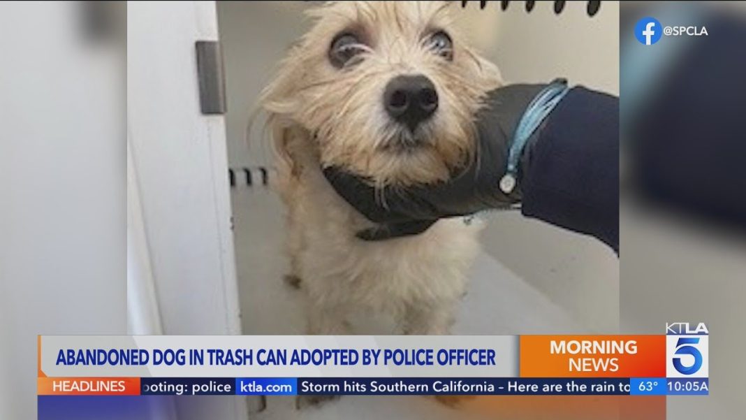 GARDENA, CA — A Gardena police officer rescued a small puppy from a self-compacting trash can outside a local church earlier this month and later adopted the dog, authorities and shelter officials said.