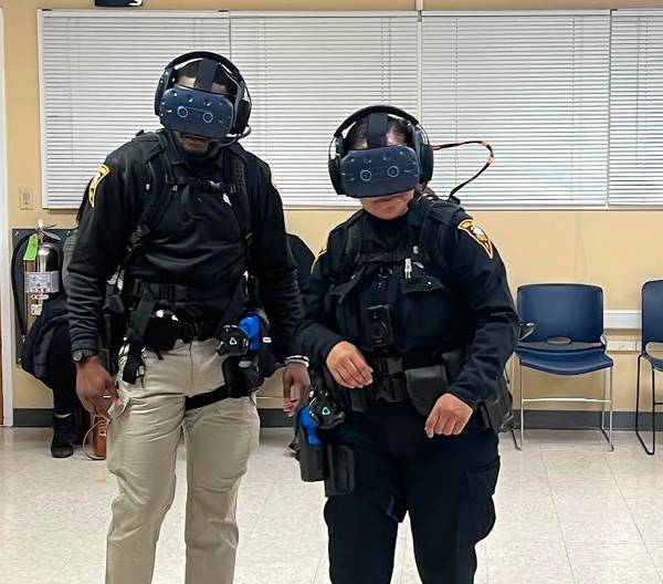 When an officer puts on the goggles, they’re immersed in a new environment where they must first understand where they are, who they are talking to and whether everyone is safe. The training helps them sharpen their observation skills and practice being aware of their surroundings, Wright said.