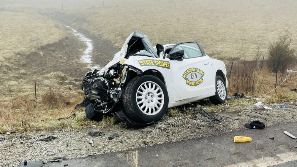 The crash occurred about 7:20 a.m. on Missouri Highway 6, roughly 1.5 miles east of Green City, when a pickup truck driven by a 25-year-old Milan man crossed the center line and struck the patrol vehicle head-on, the Missouri State Highway Patrol reported.