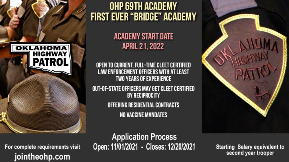 The Oklahoma Highway Patrol is accepting applications for its first-ever “bridge” academy for members of law enforcement.