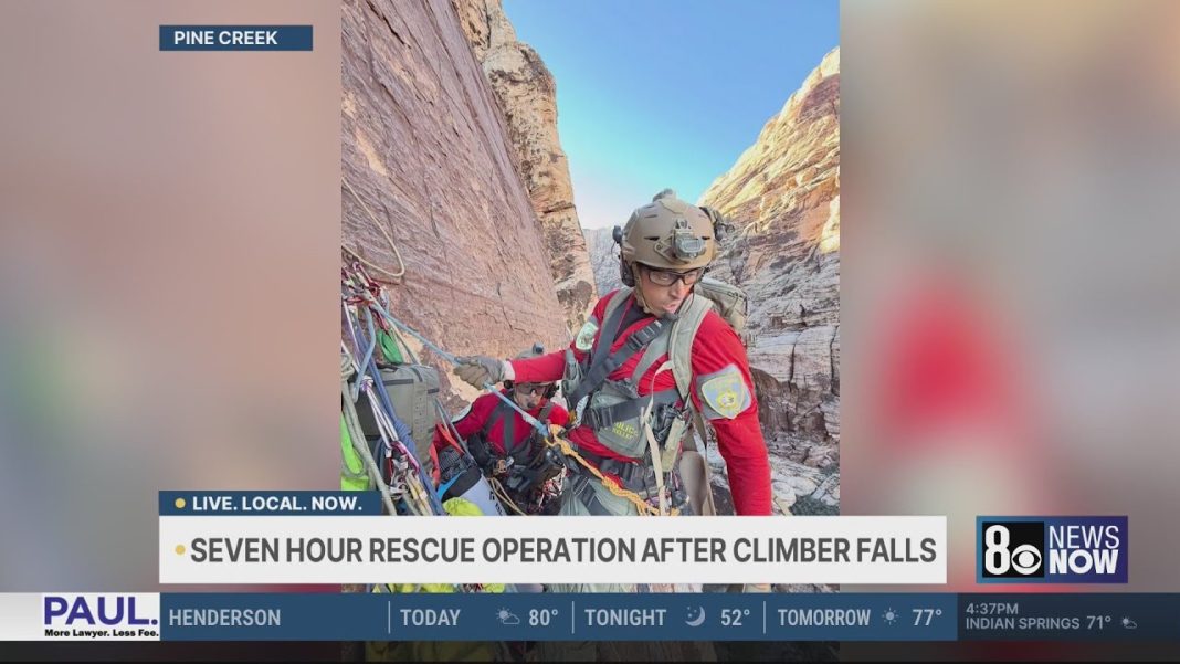 CLARK COUNTY, Nev. — A climber injured during a fall in Red Rock Canyon National Conservation Area was rescued after a seven-hour technical operation conducted by the Las Vegas Metropolitan Police Department’s Search and Rescue (SAR) team.